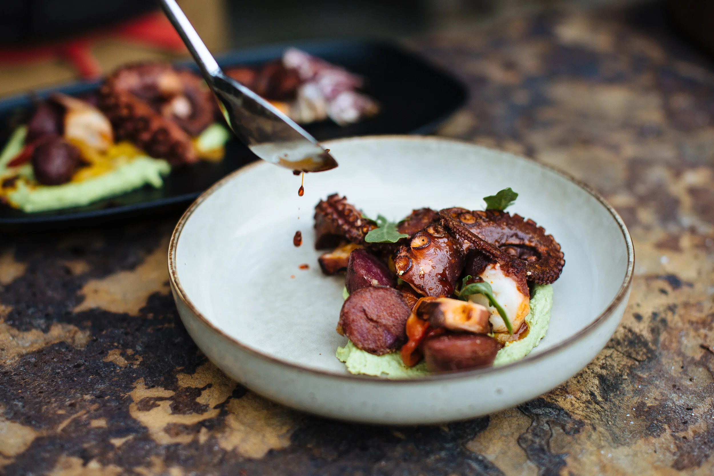 Chef Dustin Valette's kitchen is a place of creative collaboration. The menu changes with our micro-seasons, celebrating ingredients at their peak. Each dish is prepared with finesse, honoring the land and the moment. Reservations encouraged. Michelin-recognized with a Wine Spectator Award of Excellence.